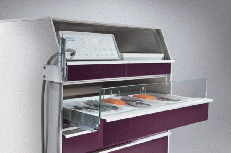 UV-compartiment (1 x 15 Watt) voor een kiem-armeruimte voor uw instrumenten, in uw directe werkomgeving. Uitneembare inleg-lade met verdeelvlakken voor uw instrumenten.