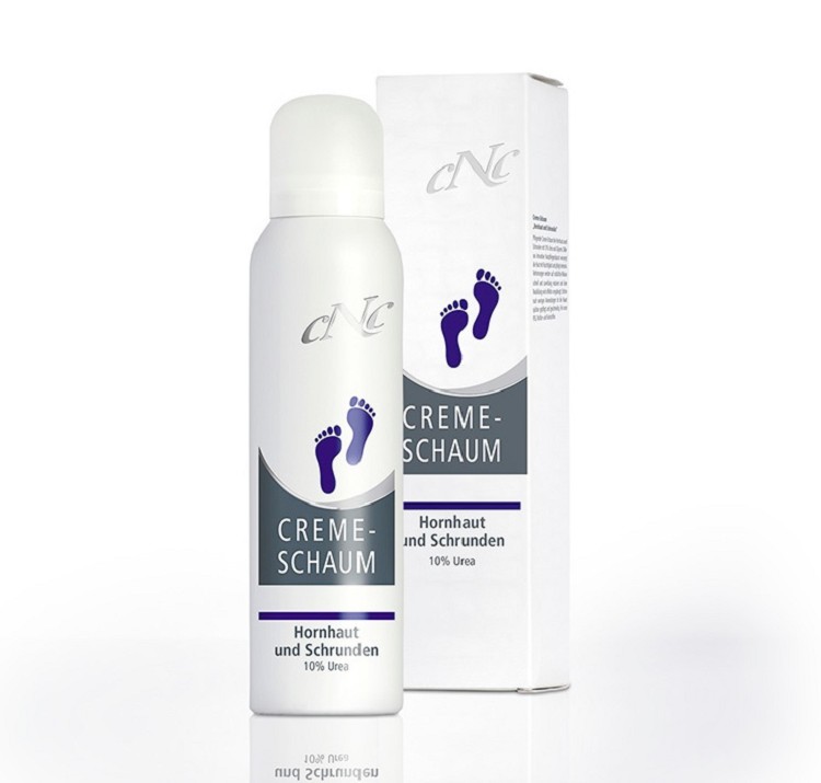 Verzorgende Crèmeschuim bij eelt en kloven met 10% Urea en Glycerine.