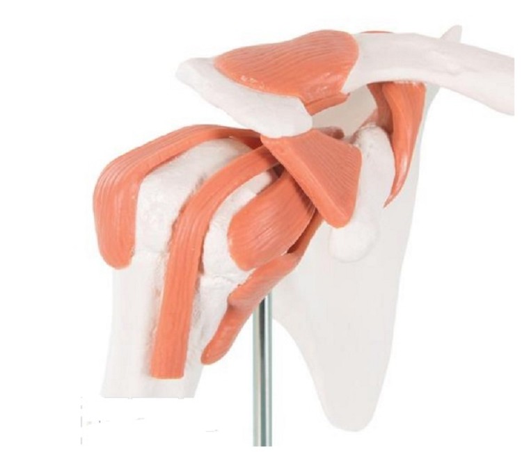 Deze hoge kwaliteit levensgrote functionele schoudergewricht model toont de anatomie en mechanica van het schoudergewricht. Bestaande uit het schouderblad, clavical, deel van opperarmbeen en gezamenlijke ligamenten, dit volledig flexibel schoudergewricht model toont duidelijk aan ontvoering, anteversie, retroversie en interne / externe rotatie. Dit functionele schoudergewricht model wordt geleverd op een standaard voor eenvoudig studeren en tentoonstellen.