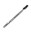 Voor de manicure EIGENSCHAPPEN: kunststof met gepolsterde tip EFFECT: terugduwen van de nagelriem BIJZONDERHEDEN: een gepolsterde tip alsook een spitse tip