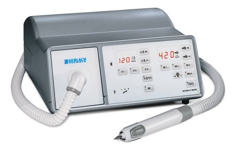 De Gerlach Saturn AT Micro is een van de 3 motoren met afzuiging die Medi Zorg Service in haar assortiment heeft. Deze motor is geschikt voor het zware werk. De micromotor is programmeerbaar tussen de 5,000 en 42,000 toeren en het afzuigvolume is programmeerbaar tot 150L per min.